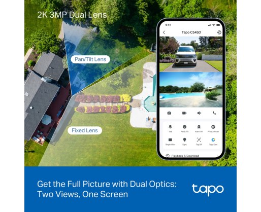 TP-LINK | Dual Lens Security Wi-Fi Camera | Tapo C545D | Dome | 3 MP | 6mm | IP66 | H.264 | MicroSD, up to 512 GB 496466