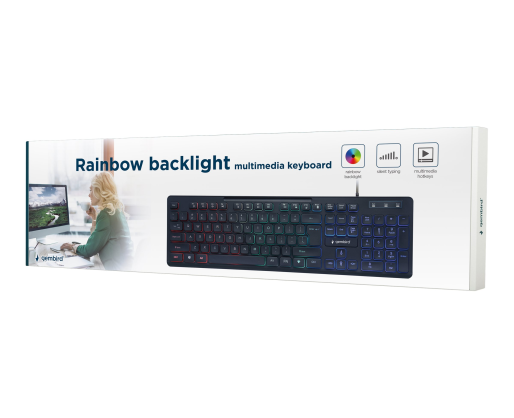 - Gembird "Rainbow" Backlight Multimedia Keyboard KB-UML-02 Keyboard Wired US N/A Black 4...