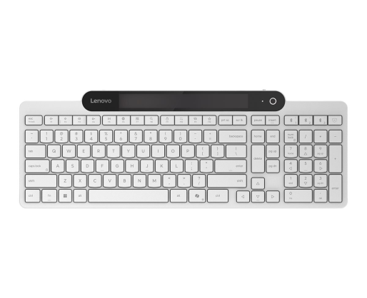 | Techniniai parametrai | Bluetooth 5.1, multi-device support, up to 3 devices connection. Support Microsoft swift pairing. Energy Source: Energy harvesting is achieved by collecting ambient light. Uses fast charging super capacitors (SuperCap) to store light energy. A reserved USB-C port for emergency charging use. Can support 1-month use when charging full. Low-profile 2.5-zone keyboard layout for effortless silent typing. Adjustable tilt leg and spill-resistant keyboard design. Customization App: Lenovo Accessories and Display Manager. Enjoy total peace of mind thanks to the 1-year warranty. |