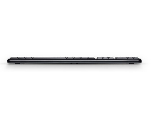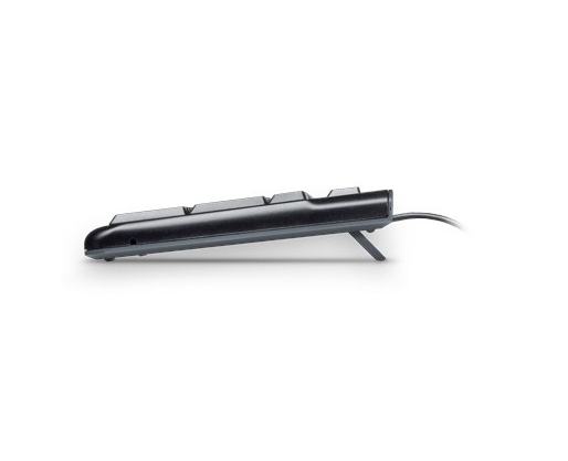 | Kitos savybės | • Virtually silent, low-profile keys• Industry standard layout with full-size F-keys and number pad• Sleek, thin profile keyboard with a spill-resistant design*• Plug-and-play USB connection• Bold, bright white characters |