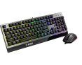 | Kitos savybės | Mechanical-like plunger switches for a crisp typing experience, Stunning RGB lighting effects in 6 areas, Water repellent keyboard design, Fine-tune detailed settings with Dragon Center, Stunning RGB lighting with over 7 lighting effects, 5-level DPI sensor matches with 5 different colors, Symmetrical mouse design, PMW-3325 Optical Sensor |