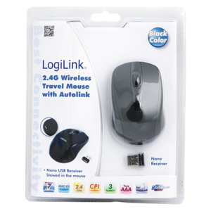 Logilink Maus optisch Funk 2.4 GHz wireless, Black, 2.4GH wireless mini mouse with autolink 164176