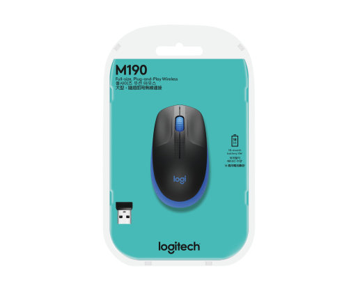 - Logitech Full size Mouse M190 Wireless Blue USB 316517