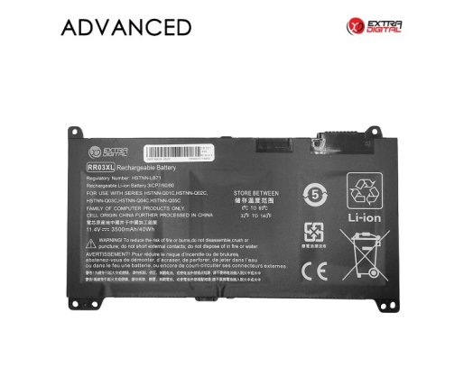 Extra Digital Advanced nešiojamojo kompiuterio baterija HP RR03XL 3500mAh, 11.4V, 40Wh.Ypatybės: