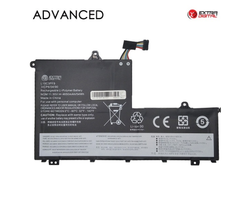 Extra Digital Advanced nešiojamojo kompiuterio baterija LENOVO L19C3PF9 4650mAh, 11.55V, 54Wh.Ypatybės: