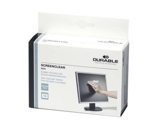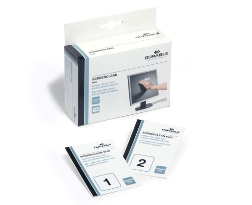 - Servetėlės kompiuterio ekranui valyti DURABLE Screenclean Duo, 10 vnt.