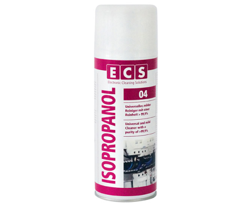 „ECS ISOPROPANOL“ yra grynas izopropanolio alkoholio tirpalas, tinkantis bendrojo naudojimo valymui ir techninei priežiūrai įvairiose PC plokštėse, magnetinėse skaitymo / rašymo galvutėse. Po valymo nepalieka jokių žymių. ISOPROPANOLIS yra universalus ir švelnus valiklis elektronikai ir smulkiajai mechanikai. Pasižymi puikiomis drėkinimo ir tirpinimo savybėmis. Tai garantuoja greitą ir patikimą pašalinimą užteršimo, pvz., dulkių, pirštų atspaudų, alyvos ir visokio lengvo purvo. ISOPROPANOLIS nepalieka žymių ir išgaruoja visiškai per trumpą laiką be jokių likučių. ISOPROPANOLIS tinkamas naudoti net jautriausiai optinei įrangai. Spalva: Bespalvis, permatomas Kvapas: Alkoholio Tankis: 0,78g/cm3 Išgaravimas: Greitas, visiškas Likučiai: Nelieka Medžiagų suderinimas: Labai geras Grynumas: 99,9% Talpa: 400ml Tinka: PC plokštės Magnetinės skaitymo / rašymo galvutės Paviršiaus valymas - dezinfekavimas Plastikiniai apvalkalai (visada patikrinkite pirmiausia) Nagų manikiūro likučių pašalinimaPrekės parametrai