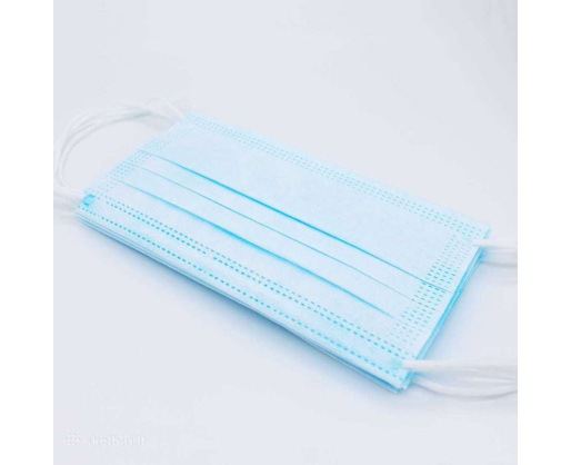 Trijų sluoksnių vienkartinė medicininė veido kaukė. Dežutėmis po 50vnt. Matmenys: 175 x 95 mm Vienkartinė kaukė sudaryta iš PP neaustinio audinio, lydytos pūstos neaustinės medžiagios (filtravimo sluoksnis), nosies spaustuko bei ausų juostelių.Prekės parametrai