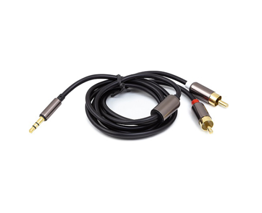 Kabelis yra naudojamas audio (stereo) signalų perdavimui, sujungia standartinį 3.5 mm ausinių lizdą su dviem RCA lizdais.