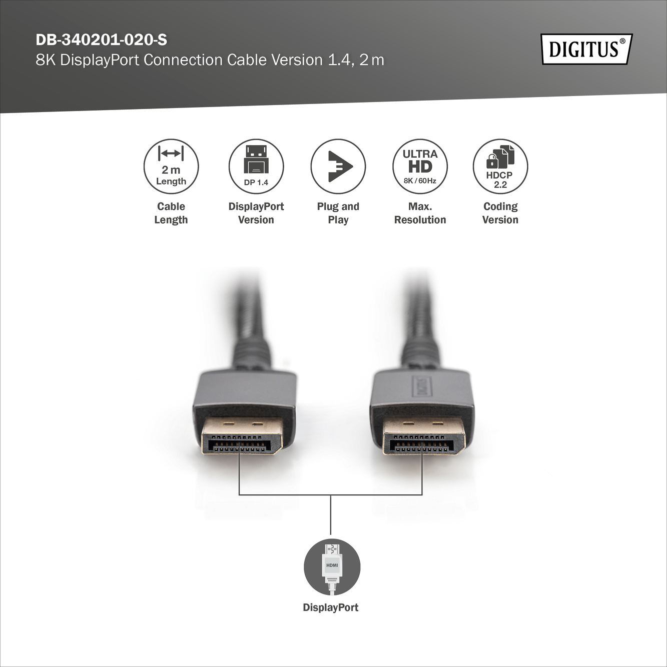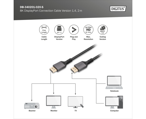 - Digitus Connection Cable | DB-340201-020-S | DisplayPort to DisplayPort 462259