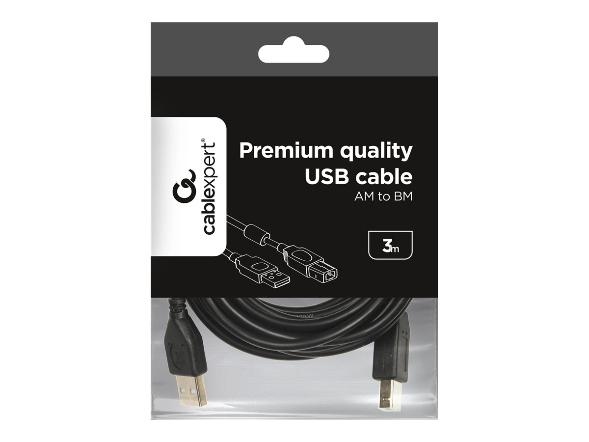 - USB 2.0 A-plug B-plug 3 m (10 ft) cable with ferrite core | Cablexpert 068185