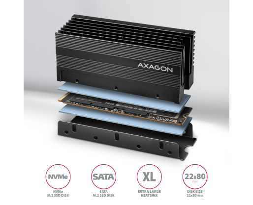- AXAGON Passive aluminum heatsink for single-sided and double-sided M.2 SSD disks, size ...