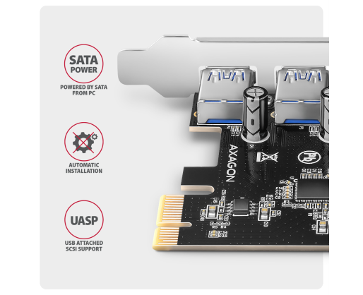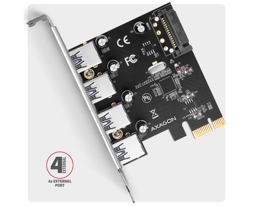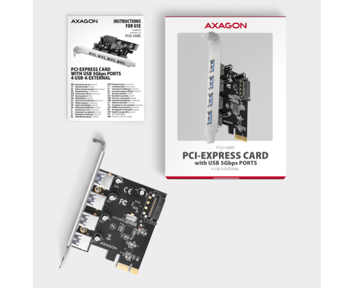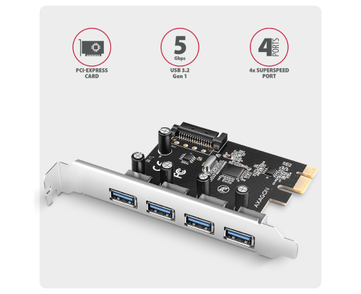 - AXAGON PCI-Express card with four external USB-A 5Gbps ports | PCEU-430RS 457253