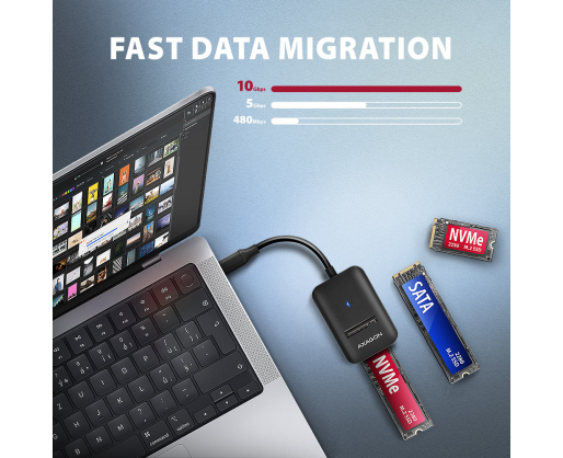 - AXAGON USB-C 10Gbps adapter for fast connection of M.2 NVMe and SATA SSD, USB-C cable 1...