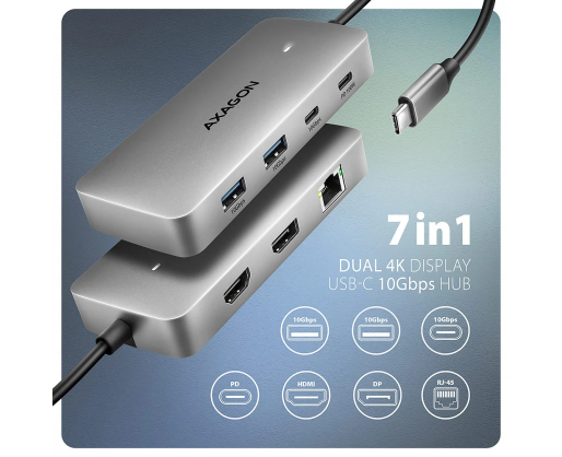 - AXAGON USB-C 10Gbps DUAL 4K DISPLAY 7in1 hub | HMC-CUB83X2 499712