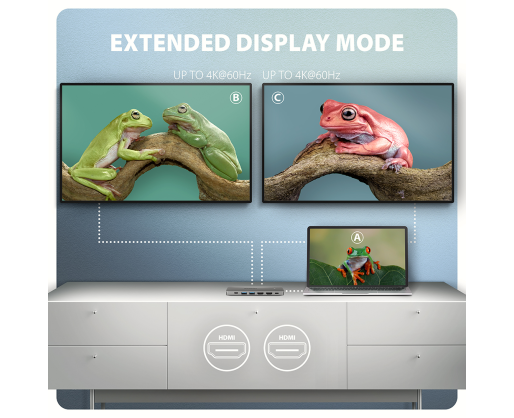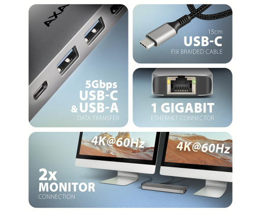 - AXAGON USB-C 5Gbps DUAL 4K DISPLAY 7in1 Hub | HMC-7HX2 469386
