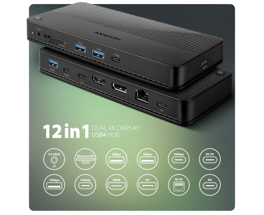 - AXAGON USB4 40Gbps DUAL 4K DISPLAY 12in1 Dock | HMC-U4 475738