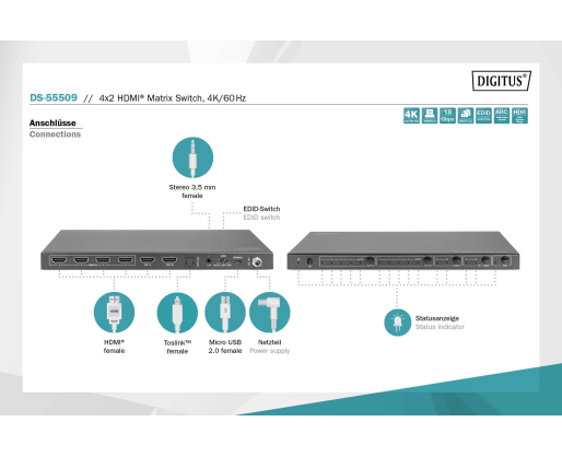 Digitus | 4x2 HDMI Matrix Switch, 4K/60Hz | DS-55509 475526
