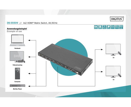 - Digitus | 4x2 HDMI Matrix Switch, 4K/60Hz | DS-55509 475526