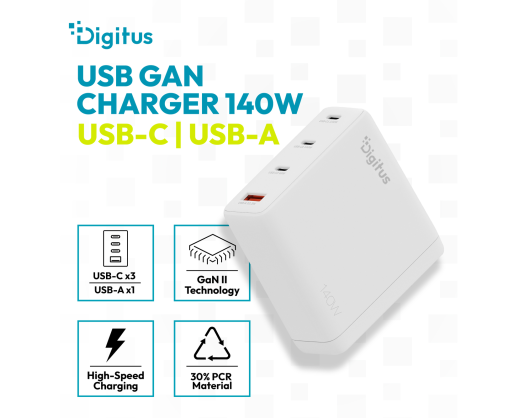 - Digitus USB GaN Charger 140W, 3x USB-C, 1x USB-A | DA-10305 603369