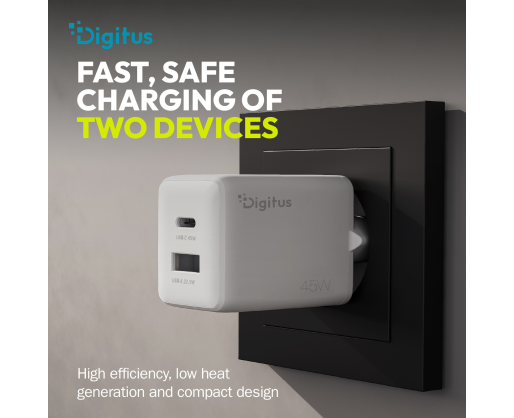 Digitus USB GaN Charger 45W, 1x USB-C, 1x USB-A | DA-10302 603339