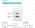 | Gamintojo prekės serija | USB GaN Charger 45W, 1x USB-C, 1x USB-A |