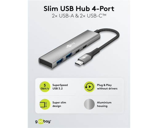 - Goobay Slim 4-Port USB Hub, USB-C to USB-C/USB-A, 5 Gbit/s | 76563 483787