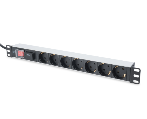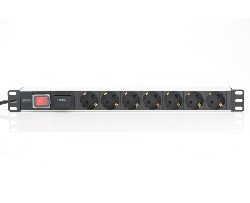 Digitus | 1U Aluminum PDU, rackmountable, 7x safety outlet 16A Plug, 250VAC 50/60Hz, switch, surge protection | DN-95407 356875