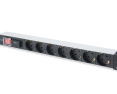 | Gamintojo prekės serija | 1U Aluminum PDU, rackmountable, 7x safety outlet 16A Plug, 250VAC 50/60Hz, switch, surge protection |