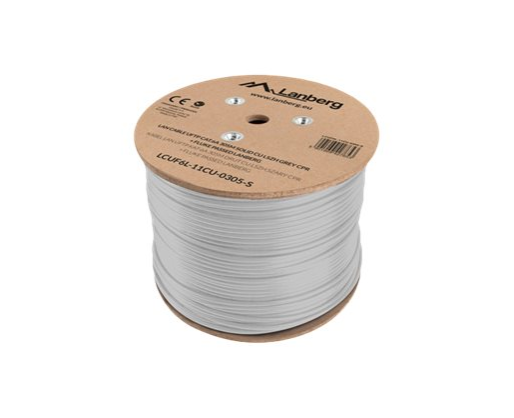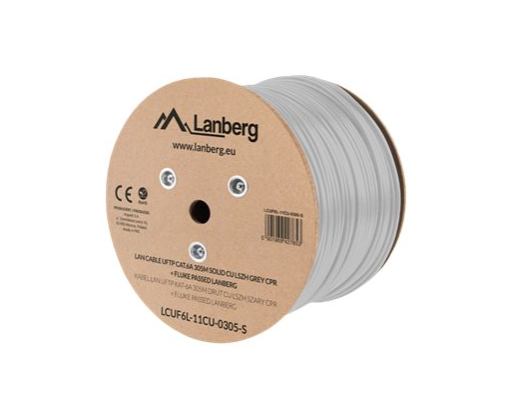 Lanberg | LAN Cable CAT.6A UFTP 305M Solid CU LSZH Grey CPR + Fluke Passed | LCUF6L-11CU-0305-S 490289