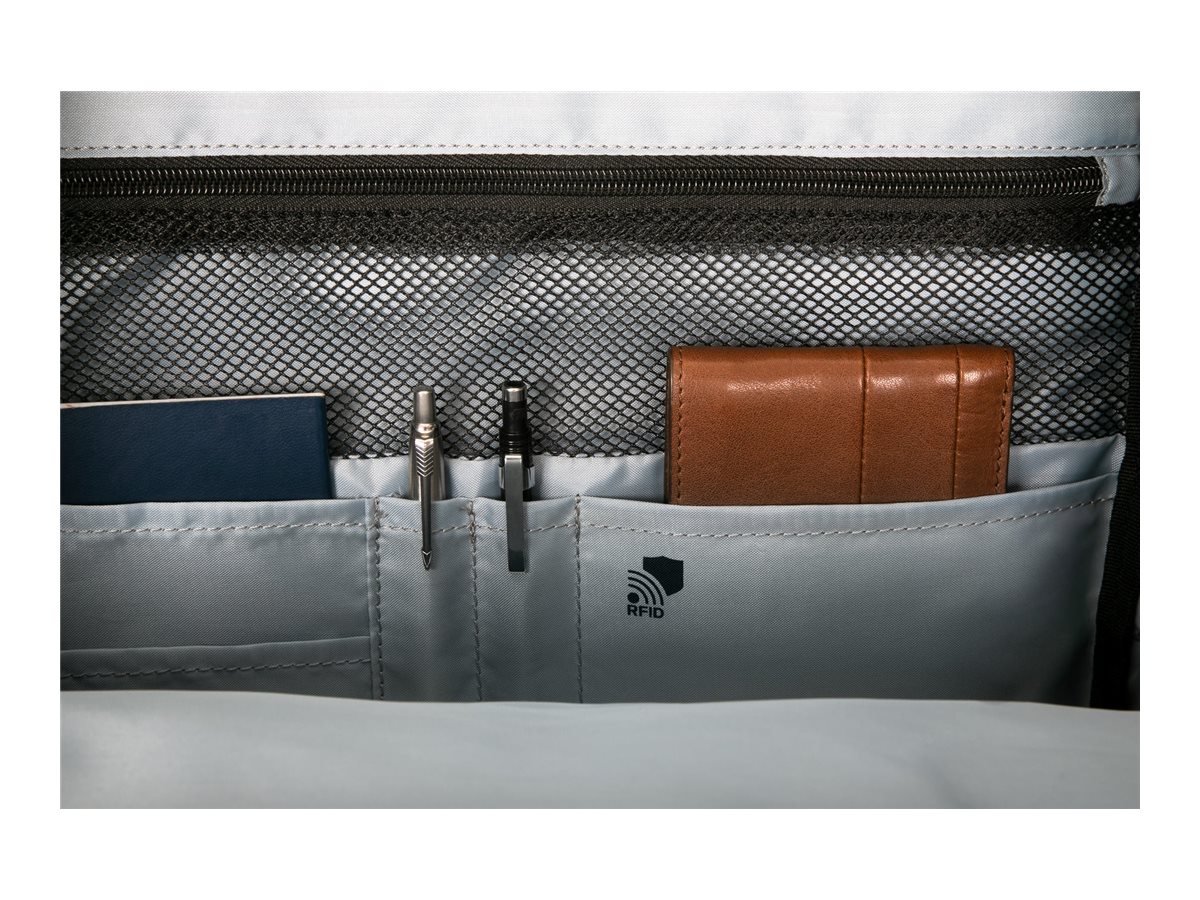 | Kitos savybės | On-trend, two-tone, minimalistic design; Dedicated, padded laptop compartment with SafePort Sling Protection System; Two exterior, front pockets |