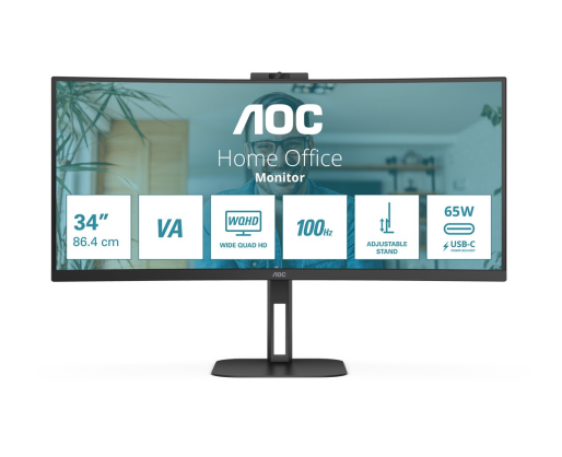 - AOC | CU34V5CW/BK | 34 " | VA | 21:9 | 100 Hz | 4 ms | 3440 x 1440 pixels | HDMI ports ...