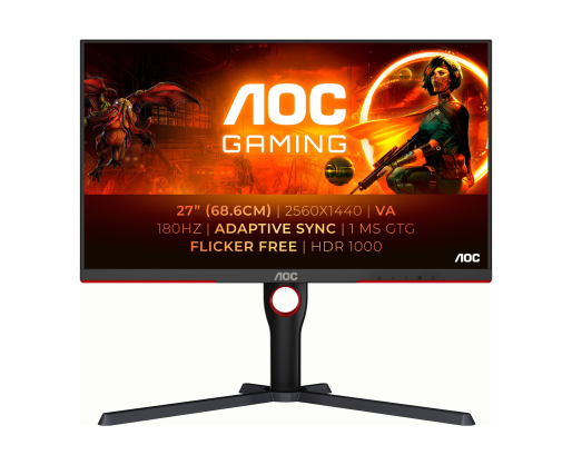 - AOC | Monitor | Q27G3XMN/BK | 27 " | VA | 16:9 | 180 Hz | 1 ms | 2560 x 1440 pixels | 7...
