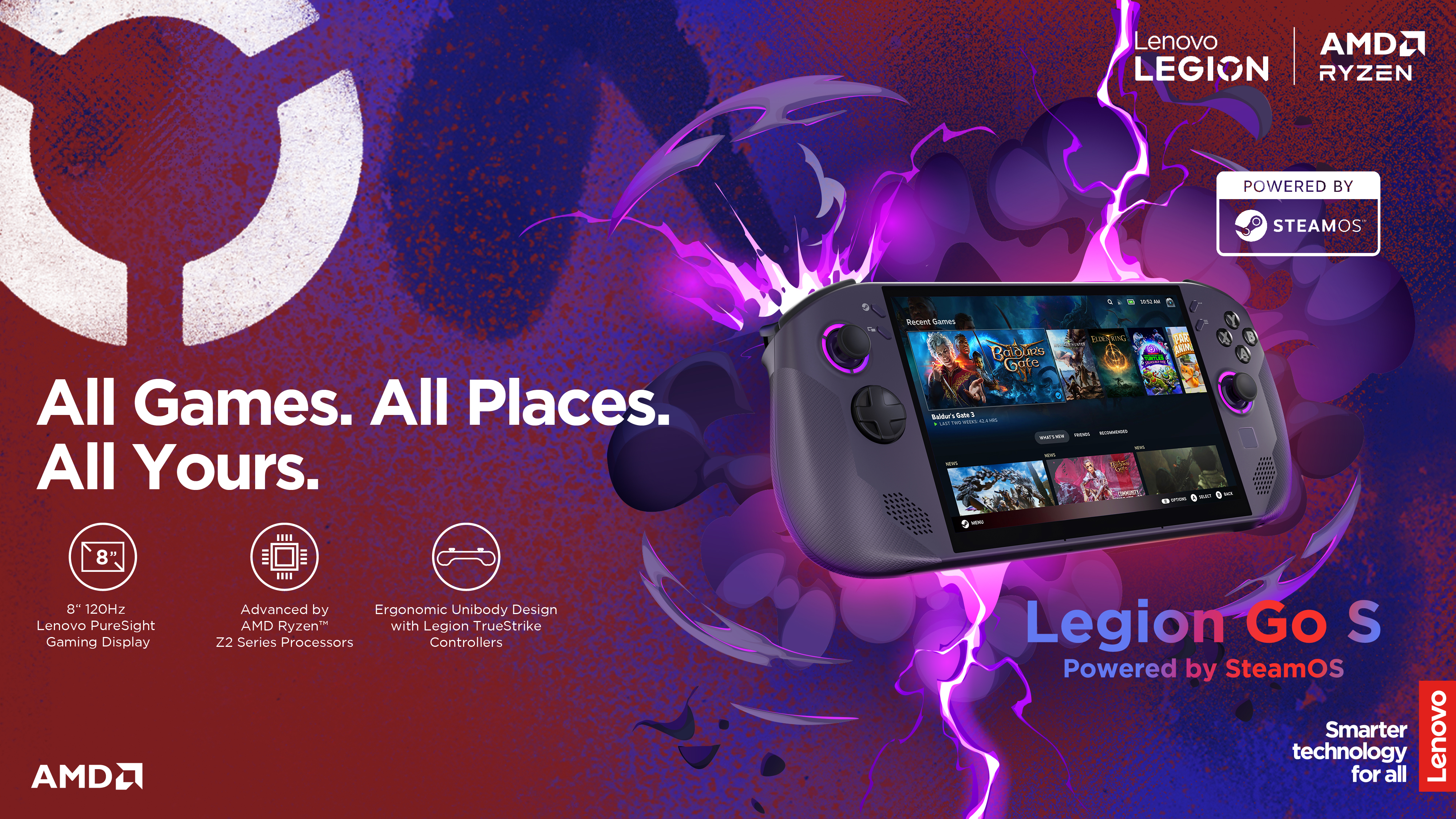 Lenovo Legion Go S 8ARP1 (Power adapter not included) | 8 " | Touchscreen | AMD Ryzen Z2 Go | 32 GB | Solid-state drive capacity 1000 GB | AMD Radeon Graphics | Steam OS | Bluetooth version 5.3 | Warranty 24 month(s) 467760