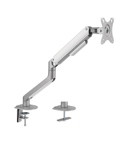 Dviejų 17“-32“ monitorių spyruoklinis stovas, juodos spalvosPlieno ir aliuminio konstrukcijos spyruoklinis stovas išlaiko du 17-32 colių ekranus, sveriančius iki 9 kg. Skirtas tvirtinimui ant stalviršio.