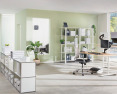 Papildoma saugojimo vieta po stovu, kad jūsų darbo vieta būtų tvarkinga.