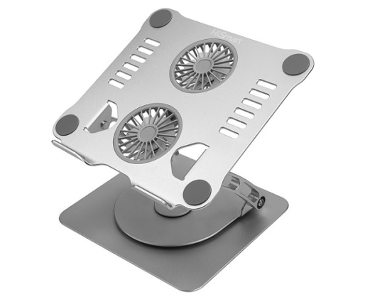 Planšetinio kompiuterio aušinimo stovas HiSmart SX-LS111B, aliuminis, su 2x ventiliatoriais, laisvai reguliuojamo posvyrio, sulankstomas, sidabrinės spalvosYpatybės:
