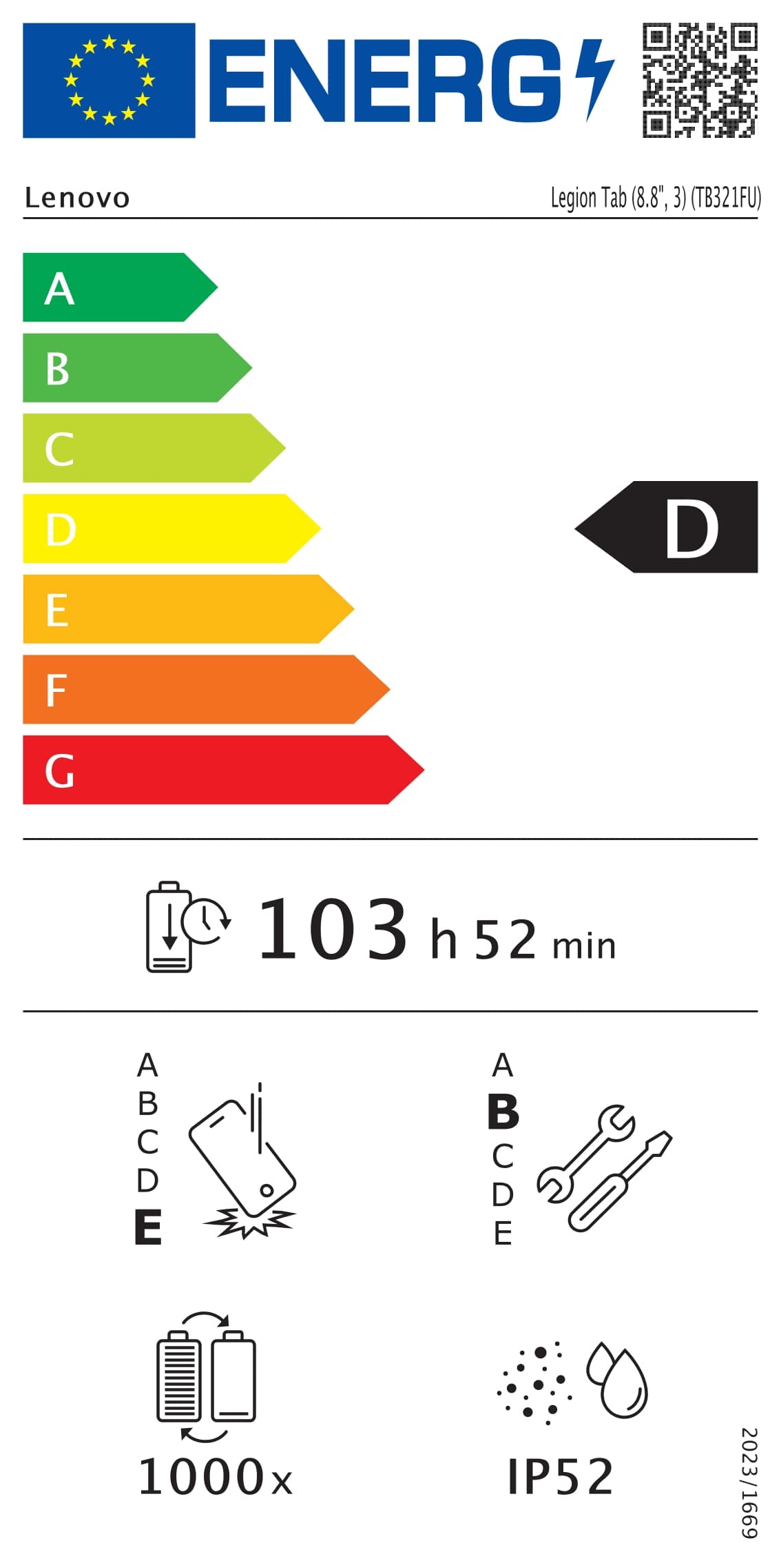 Lenovo Legion Tab (without power adapter) | 8.8 " | Eclipse Black | 2560 x 1600 pixels | Qualcomm | Snapdragon 8 Gen 3 | 12 GB | Soldered LPDDR5x | 256 GB | Wi-Fi | Front camera | 8 MP | Rear camera | 13 MP | Bluetooth | 5.4 | Android | 14 | Warranty 24 month(s) | Folio Case + Glass Film 466103