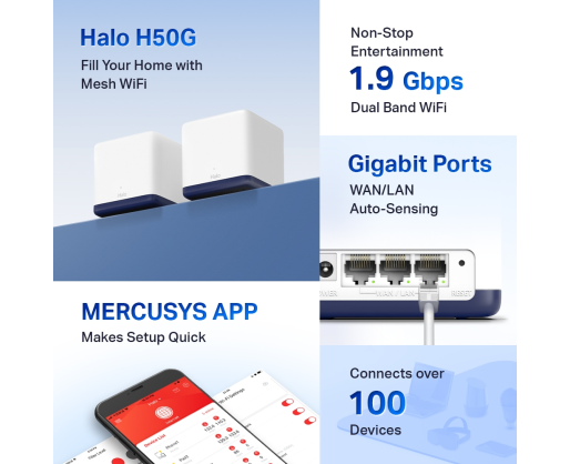 - Mercusys AC1900 Whole Home Mesh Wi-Fi System Halo H50G (2-Pack) 802.11ac 600+1300 Mbit/...