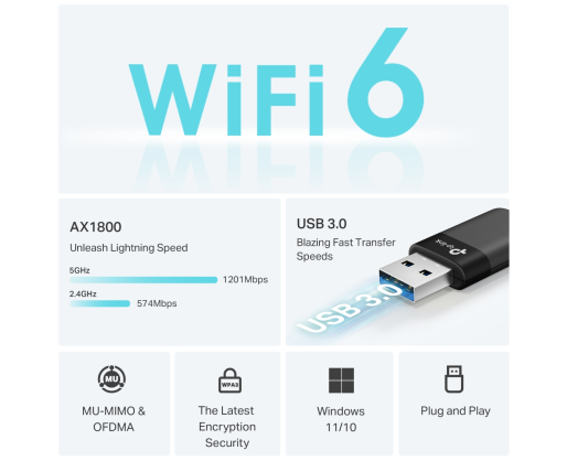 - TP-LINK Archer TX23U | AX1800 Mini Wi-Fi6 Wireless USB Adapter | 802.11ax | MU-MiMO Yes...
