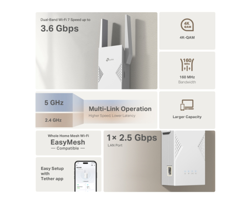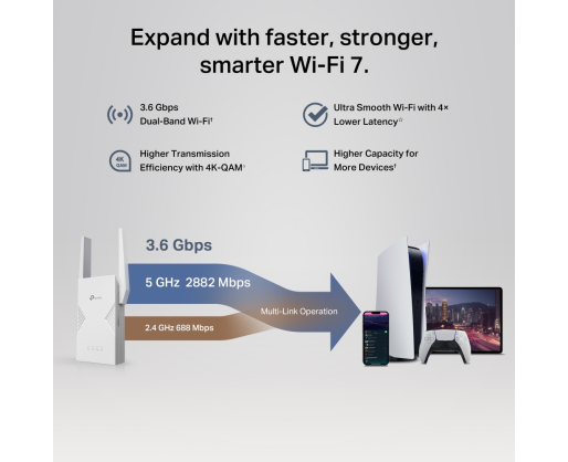 - TP-LINK BE3600 Dual-Band Wi-Fi 7 Range Extender | RE235BE | 802.11ax | 688/2882 Mbit/s ...