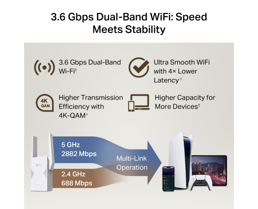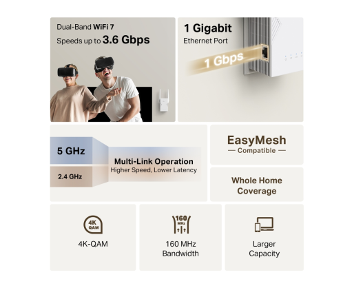 - TP-Link RE225BE BE3600 Dual-Band Wi-Fi 7 Range Extender | TP-LINK 603864