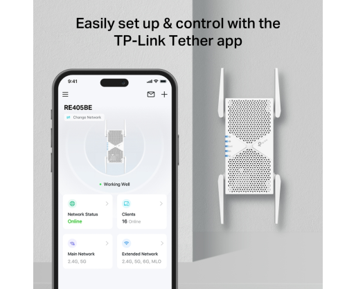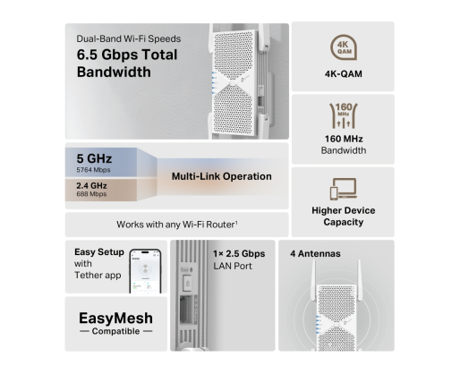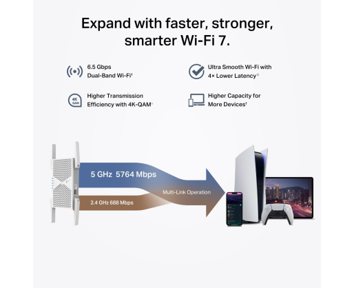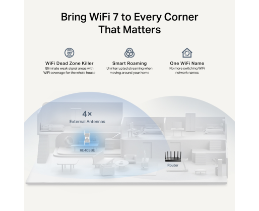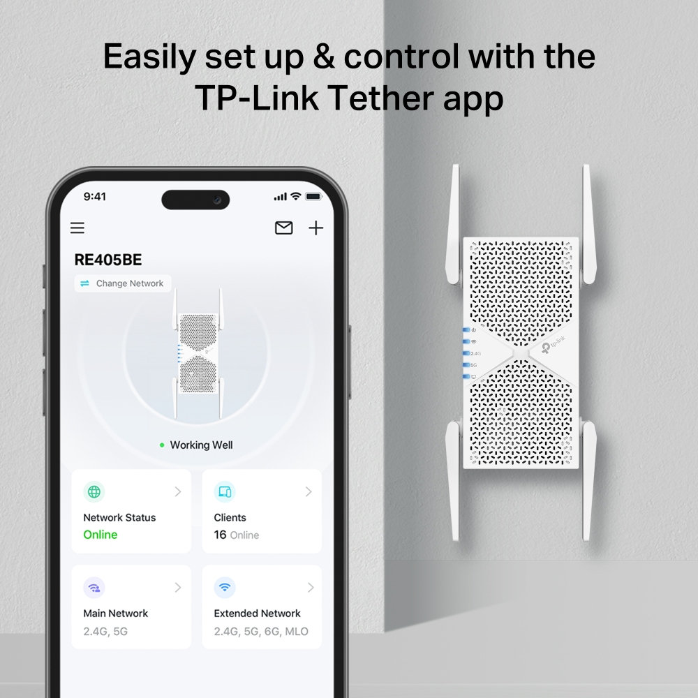 - TP-Link RE405BE BE6500 Dual-Band Wi-Fi 7 Range Extender 603863