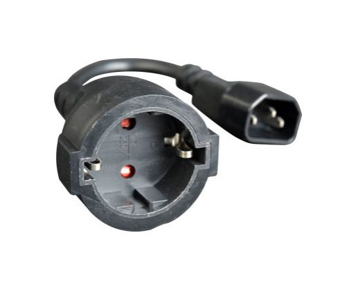 | Kitos savybės | Power adapter cord with C14 input and Schuko output; Suitable for a load connection to an UPS or PDU; Wires: profile area 0.75 sq.mm, 10 A rating (H05VV-F 3G0,75 mm?) |