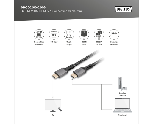 - Digitus 8K HDMI Ultra High Speed Connection Cable | DB-330200-020-S | 2 m 601189