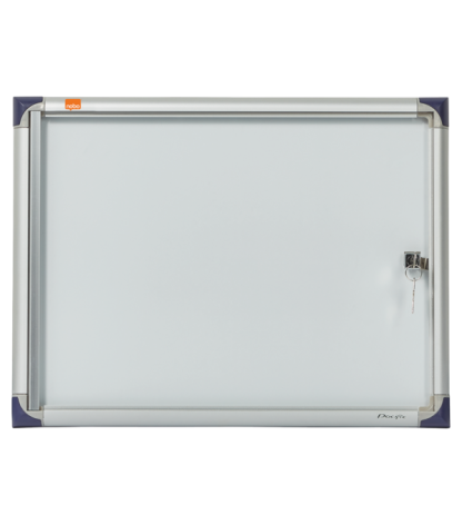 Užrakinama kamštinė skelbimų lenta NOBO su kokybiška kamščio danga, stilingo aliuminio rėmu, skaidriomis stiklo durelėmis. Idealiai tinka dokumentams koridoriuose. Komplekte yra 1 raktas ir sienų tvirtinimo elementai. A4x9 dydis. 709x970 mm. Svoris 10,50kg