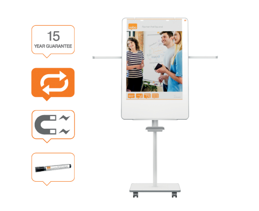 Dvipusis konferencinis stovas Nobo Move & Meet su ratukais 70x100cm. Konferencinis stovas turi nuimamą dvipusę lentą apvalintais kampais. Lentą galima naudoti tiek vertikaliai tiek horizontaliai.