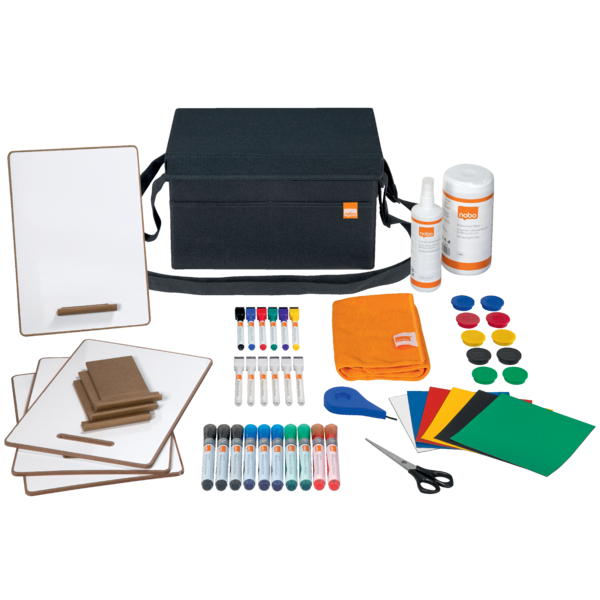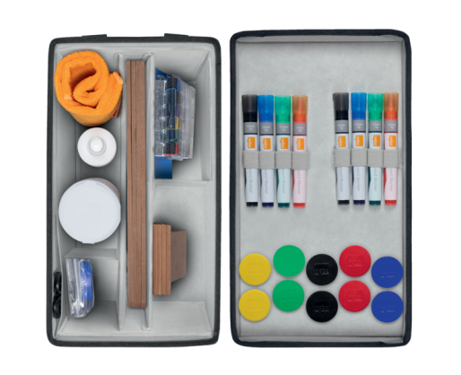 Mobilus magnetinės baltos lentos priedų rinkinys su krepšiu – tai viskas, ko reikia efektyviems susitikimams ir kūrybiniam komandiniam darbui. Rinkinyje rasite baltos lentos žymeklius, magnetus, mini lentas ir valymo priemones, patogiai sudėtas į lengvą, stilingą krepšį. Puikiai tinka biurui, mokymams ir darbui kelyje.