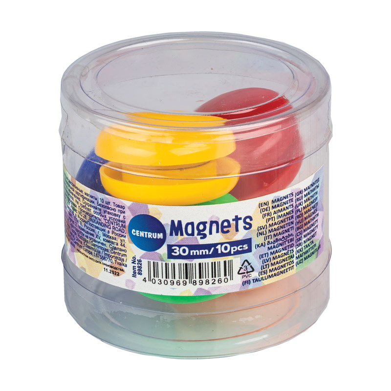 Magnetai Centrum 30mm, įvairių spalvų, 10 vnt indelyje