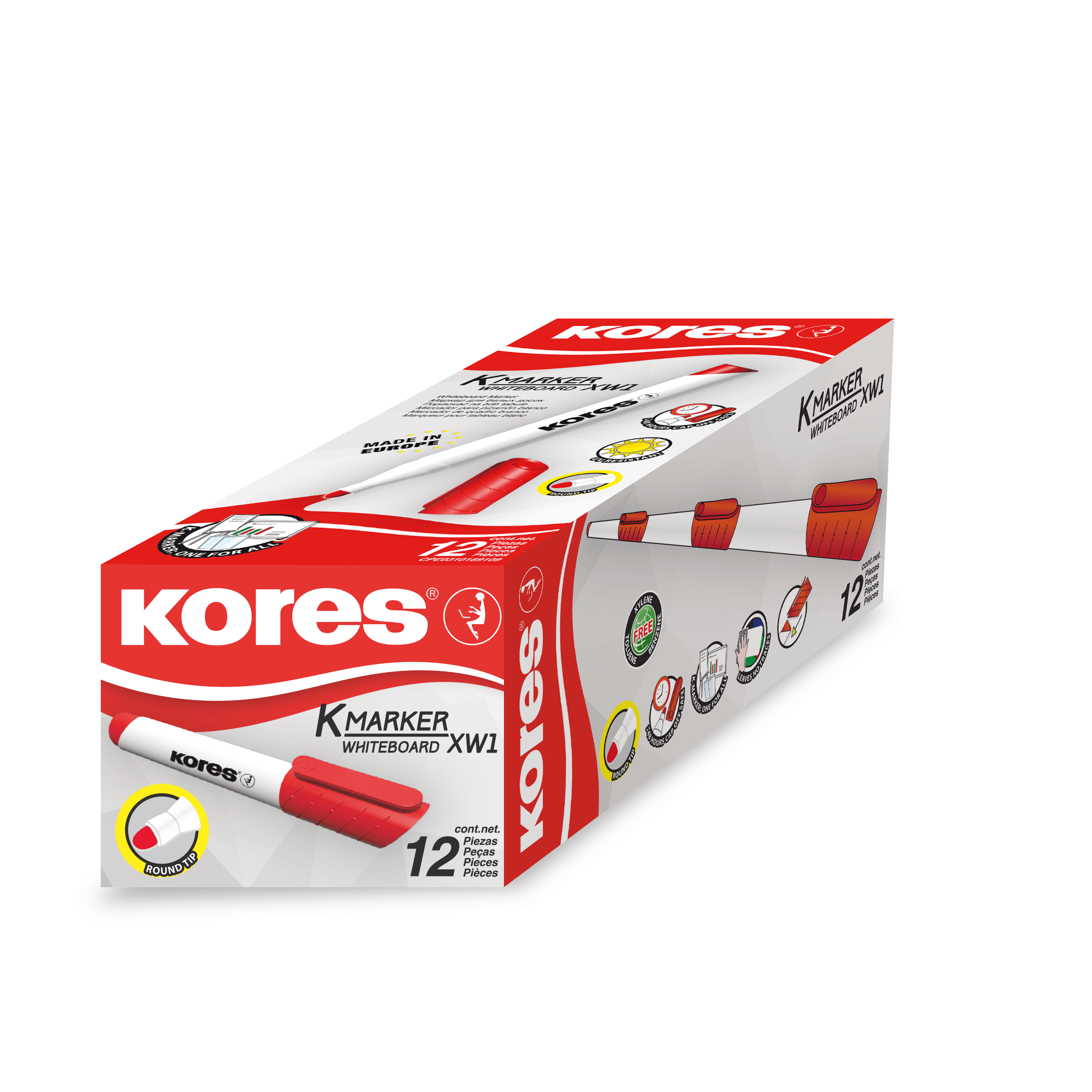 Žymeklis baltai lentai KORES, raudonos spalvos. Apvali galvutė. Neuždžiūna paliktas atidarytas keletą dienų.